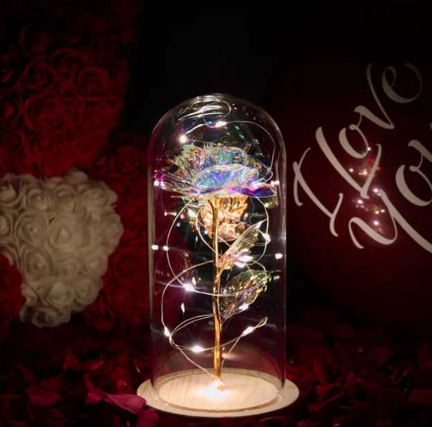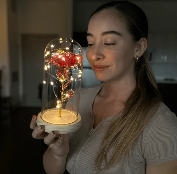 Podaruj magię, która nigdy nie gaśnie! Piękna wieczna róża zamknięta w eleganckiej szklanej kopule z romantycznym podświetleniem LED. To nie tylko dekoracja - to symbol wiecznej miłości, który świeci w ciemności.